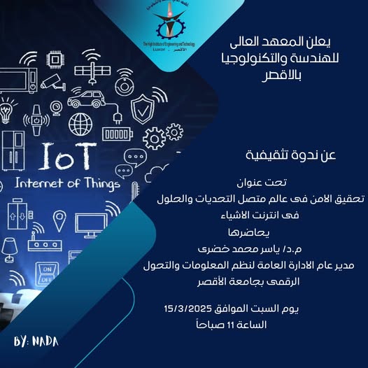 برعاية السيد الدكتور/ محمد الرملى حسين رئيس مجلس الادارة والسيد الاستاذ الدكتور/ عبدالناصر عمران عميد المعهد وبحضور السيد الاستاذ الدكتور محمد حسن الساعى رئيس قسم الهندسة الكهربائيسة بكلية الهندسة جامعة الازهر بقنا والسيدة الدكتورة/ نهى انور القائم باعمال وكيل المعهد لشئون خدمة المجتمع وتنمية البيئة والسيد الدكتور/ احمد عبدالعزيز رئيس …